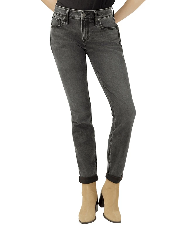 Silver Jeans Co. Women's Boyfriend Mid Rise Slim Leg Luxe Stretch