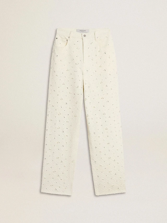 Women's khaki cotton pants with gradient Swarovski effect