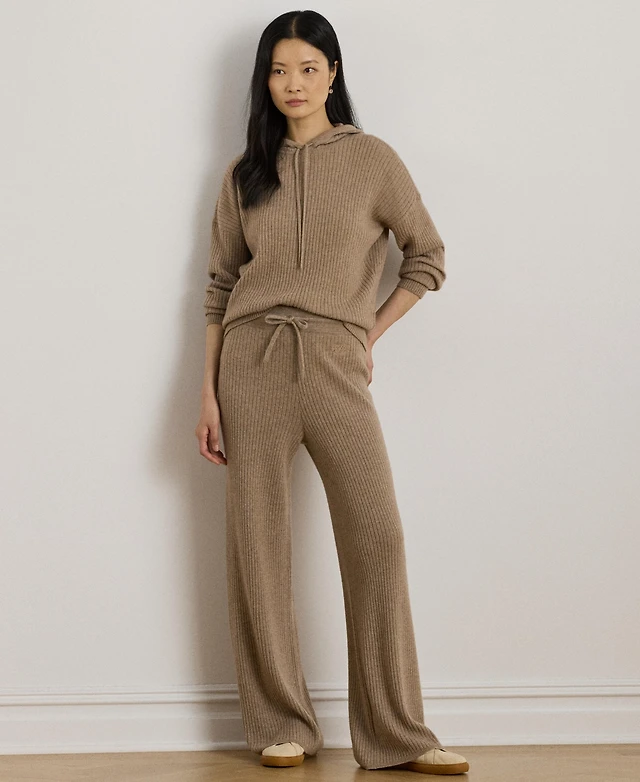 Lauren Ralph Women's Rib-Knit 100% Cashmere Checha Full Length Wide-Leg Pants