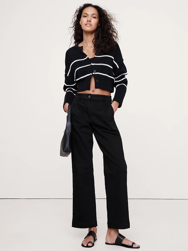 Lands' End Women's Plus Sport Knit High Rise Relaxed Straight Leg Side Stripe Pants