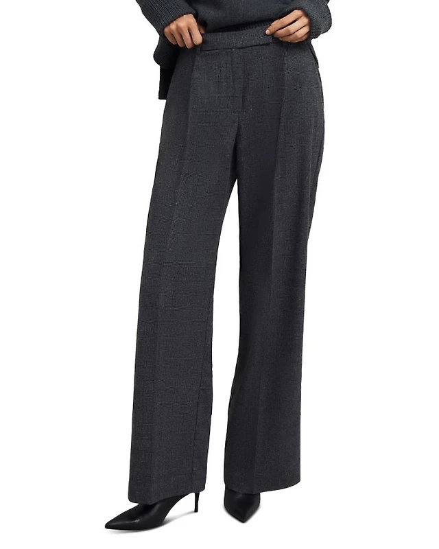 Dkny Womens Printed Puff Sleeve Ruched Top Glazed High Rise Seamed Cuff Wide Leg Pants