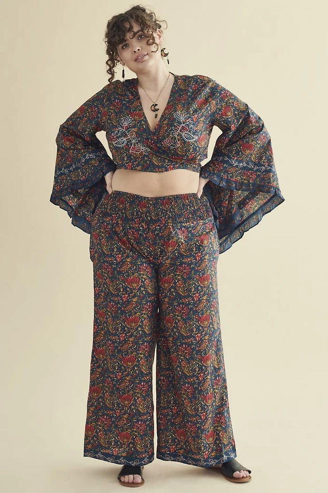 Buy Teal Boho Sun Panel Wide Leg Pants Online at Earthbound Trading