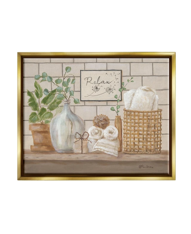 Stupell Industries Relax Uplifting Bathroom Scene Framed Floater Canvas Wall Art, 17" x 1.7" x 21"