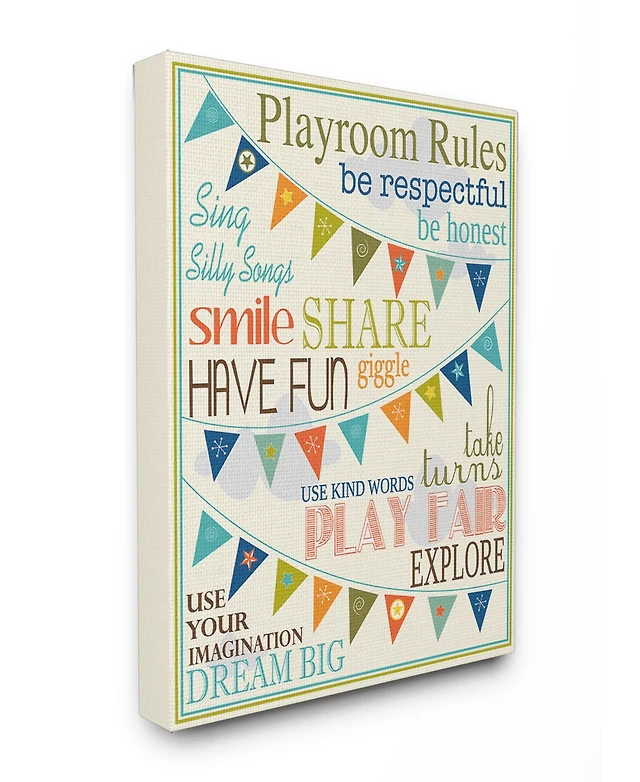 Stupell Industries The Kids Room by Stupell Gray and Navy Superhero Rules Typography Canvas Wall Art, 10" L x 24" H
