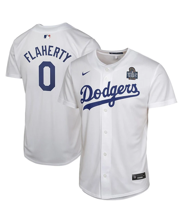 Nike Big Boys and Girls Jack Flaherty White Los Angeles Dodgers 2024 World Series Patch Home Game Player Jersey