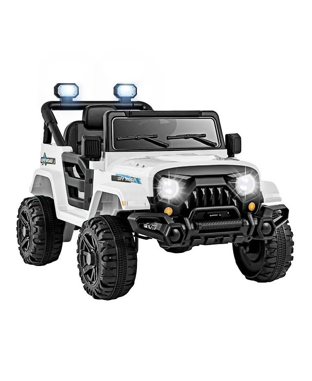 12V Kids Ride on Truck Car with Remote Control Threaded Wheels and 3 Speeds-White