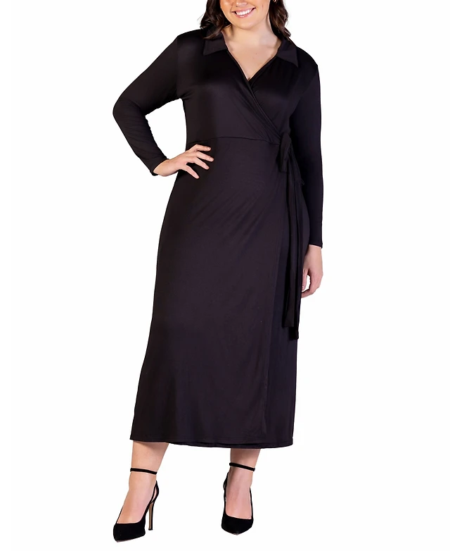 24seven Comfort Apparel Women's Long Sleeve Wrap Dress
