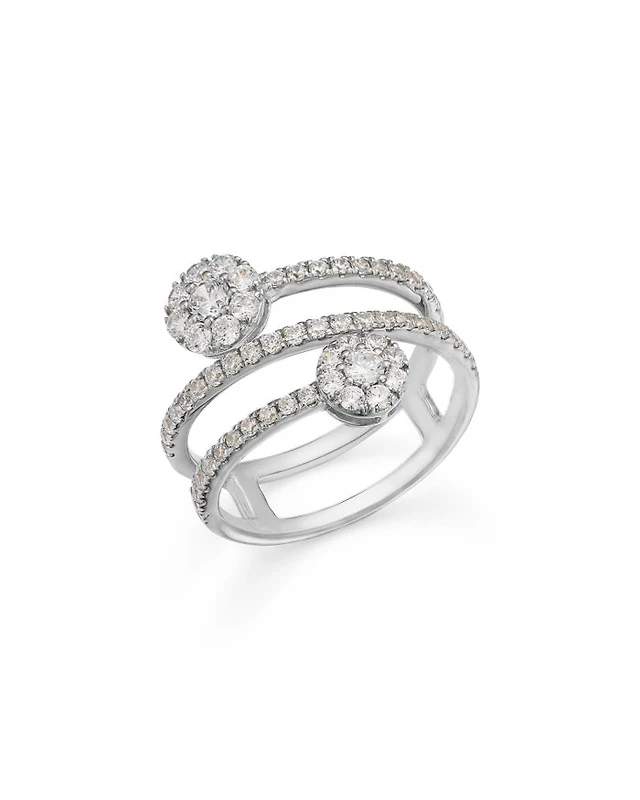 Diamond Flower Wrap Ring in 14K White Gold, 1.0 tcw