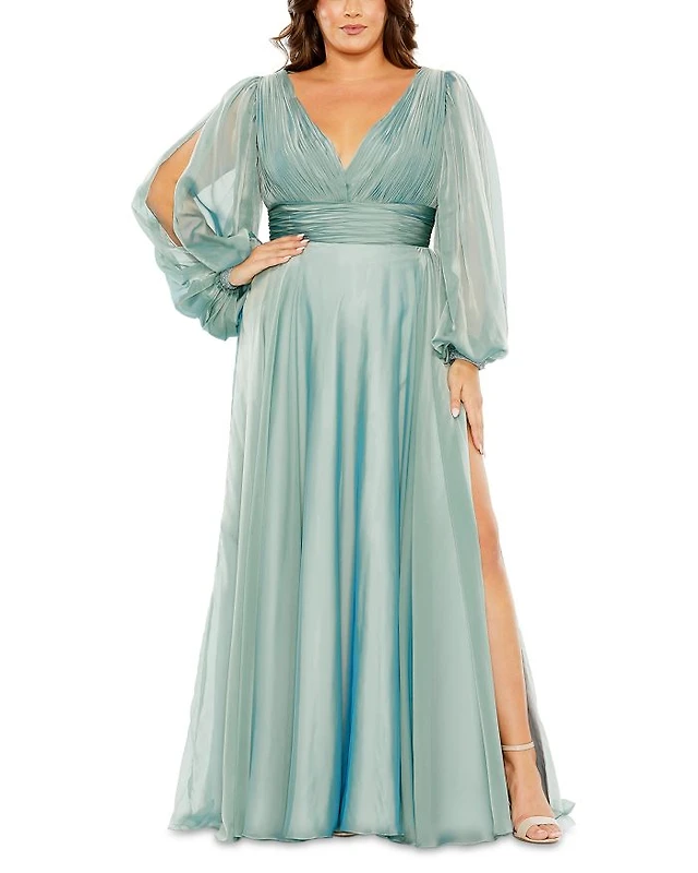 Women's Ruffle Tiered Floral Cut-Out Chiffon Gown