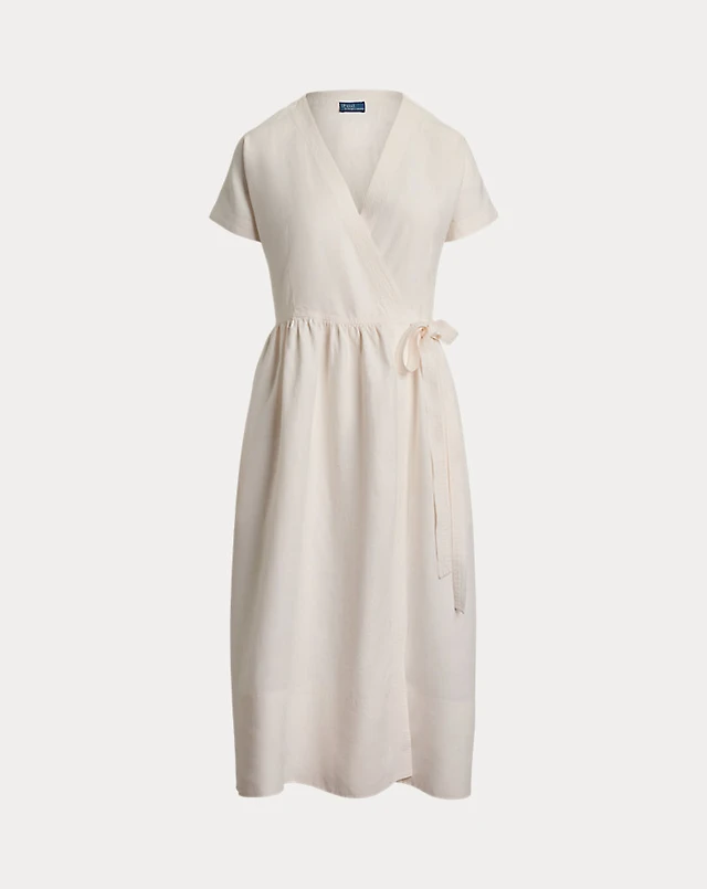 Floral Linen-Blend Scoop Neck Tie Wrap Mini Sheath Dress