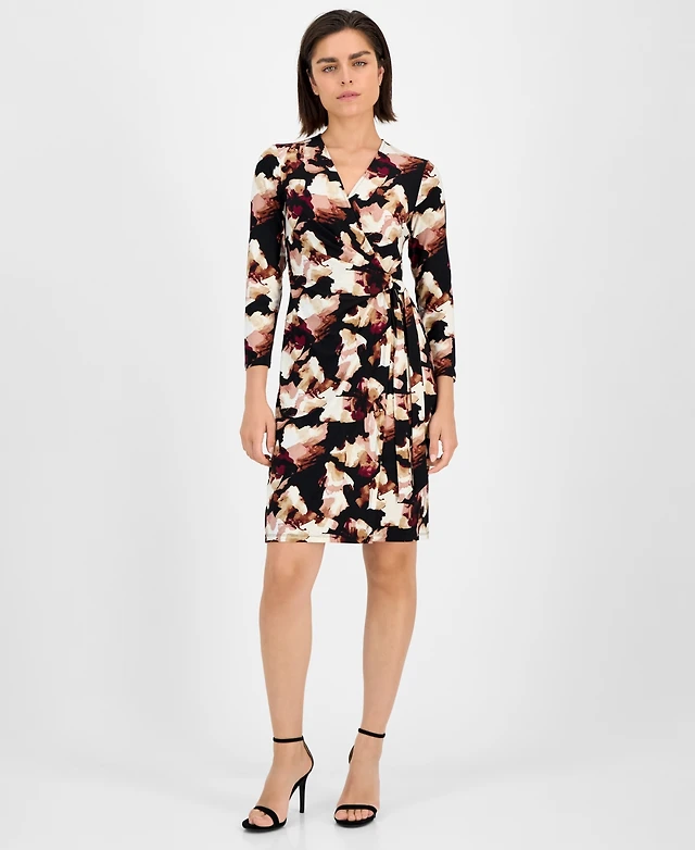 Connected Women's Printed Faux-Wrap Sheath Dress