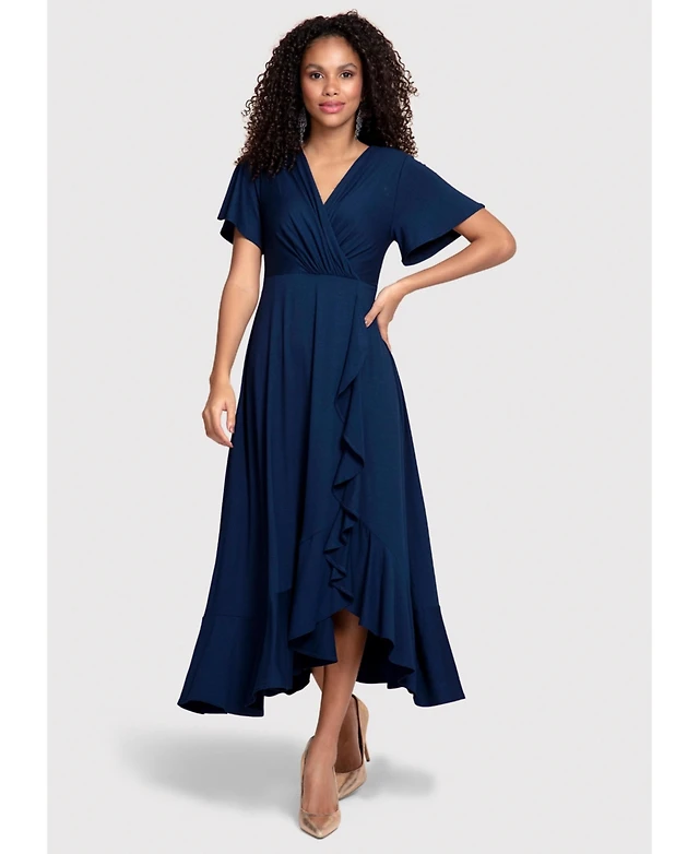 Dkny Plus Flutter-Sleeve Belted High-Low Dress