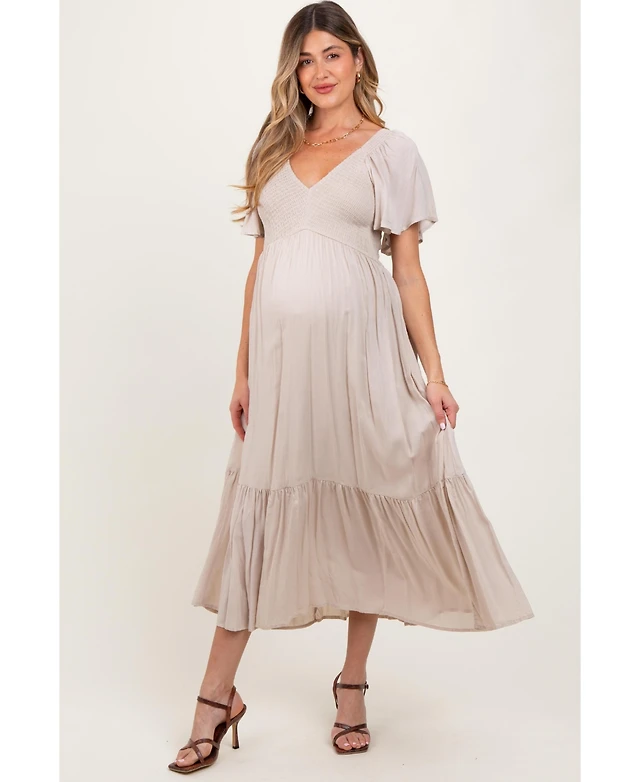 Pinkblush Cream Smocked Flutter Sleeve Midi Dress