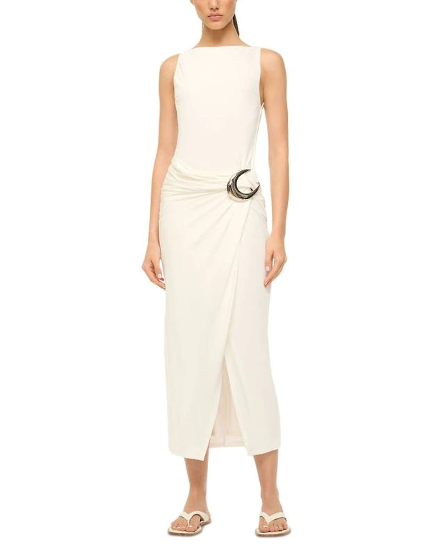 Palms Pontoon Afternoon Ankle Dress Salty Sand And Ecru