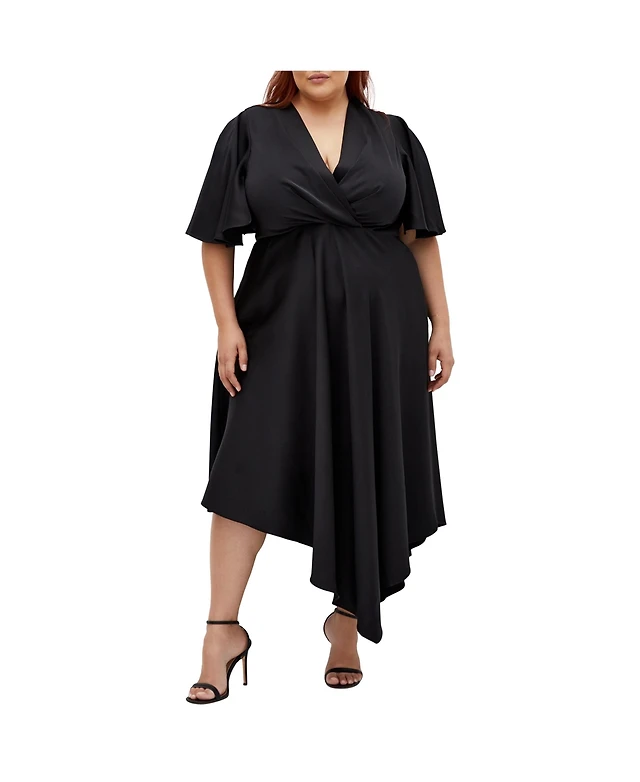 City Chic Plus Love Siren Ruffle Shoulder Dress