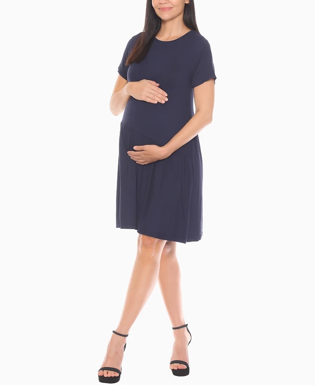 White Mark Women's Asymmetrical Waistline Maternity Dress
