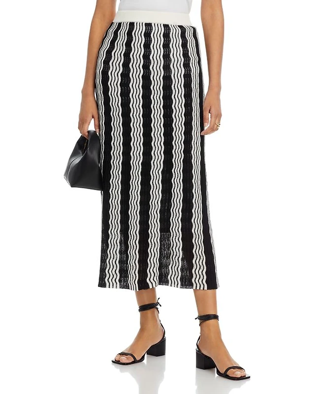 Pointelle Intarsia Knit Midi Skirt