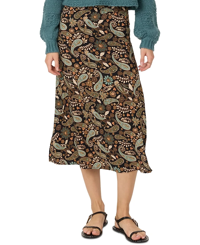 24seven Comfort Apparel Women's Green Paisley Print Midi Skirt