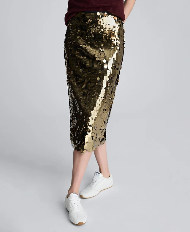 Eloquii Women's Plus Semi Sheer Sequin Midi Skirt