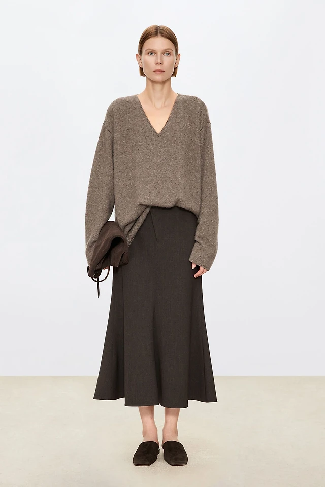 Italian Wool and Pure Silk Elastic Waist Midi Skirt