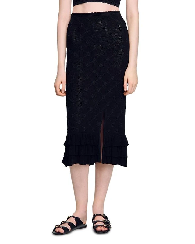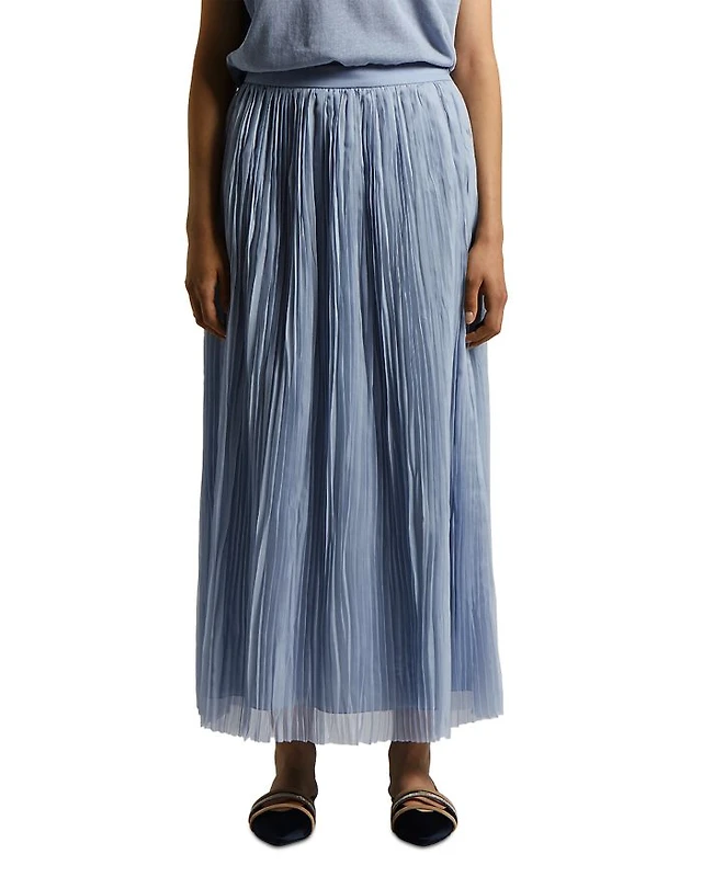 Sunburst Pleat Ribbed Knit Midi Skirt