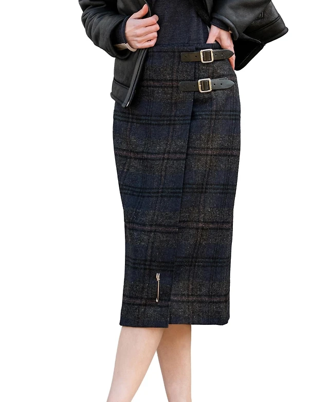 Fine Wool Hand-Stitched White Thread Tiered Midi Skirt