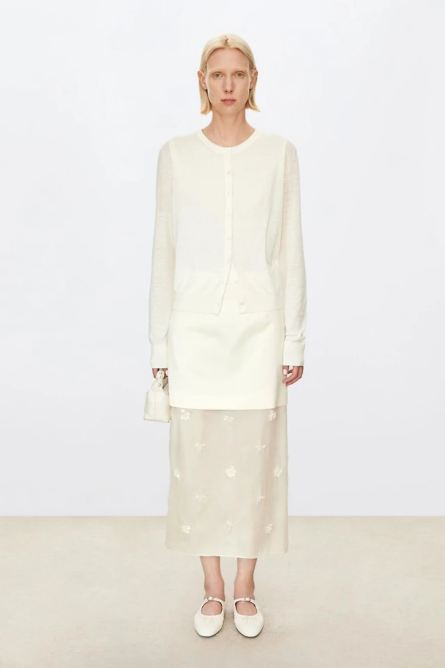 SUPIMA High-Density Pure Cotton Front-Slit Midi Skirt