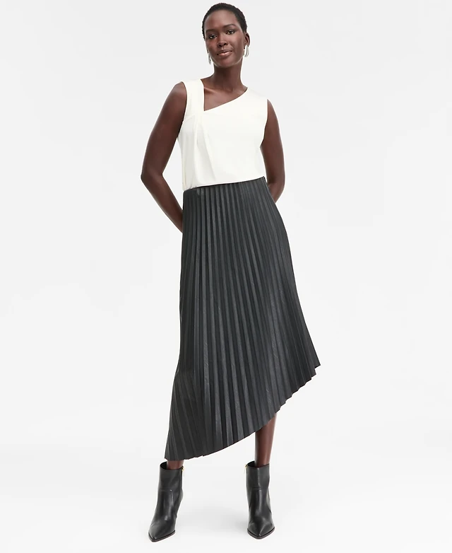 Calvin Klein Plus Size Pleated Dot-Print Skirt
