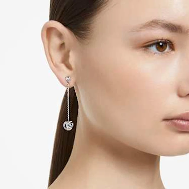 Stilla drop earrings, Square cut, White, Rhodium plated by SWAROVSKI