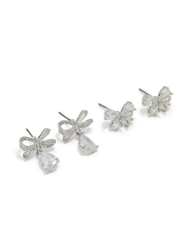 Silver Cubic Zirconia Bow Earrings 2-Pack
