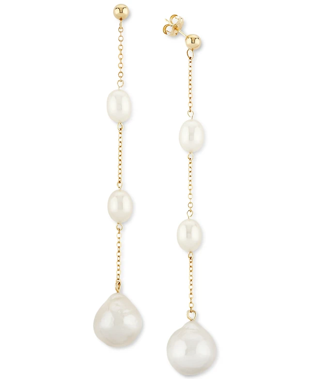Cultured Freshwater Pearl (7 x 9mm) Double Hoop Drop Earrings in 18k Gold over Sterling Silver, Created for Macy's
