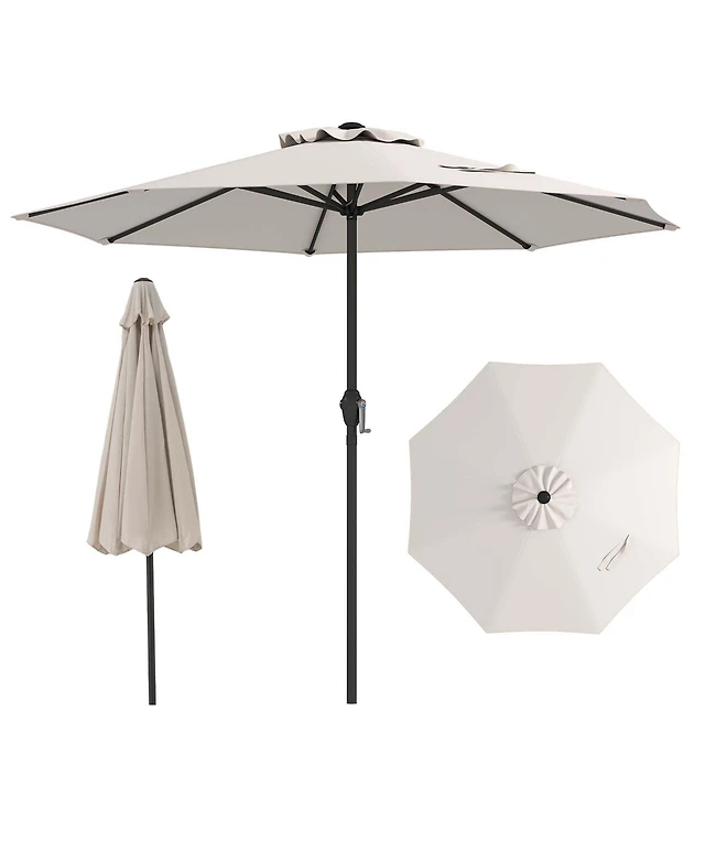 Aoodor 9FT Outdoor Patio Market Umbrella Aluminum Frame with Push Button Tilt Crank and 8 Steel Ribs, Uv Protection Waterproof