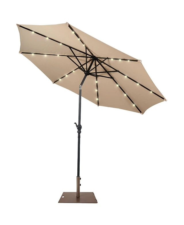 Jonathan Y 9ft 2-Tone Solar Led Patio Umbrella, 12 LEDs, Auto-Tilt, Crank, Uv Protection