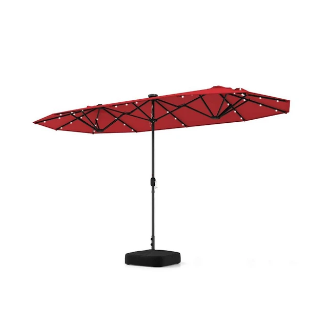 10 ft. x 6.5 Rectangular Lighted Market Umbrella with Waterproof and Uv Resistant Red