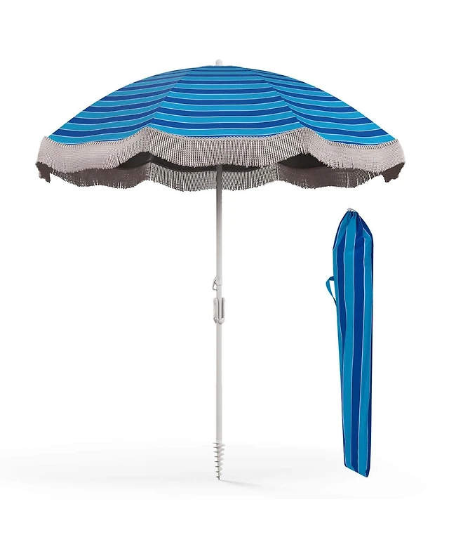 6.5 Ft Outdoor Fringe Patio Umbrella with Carrying Bag Push Button Tilt for Garden