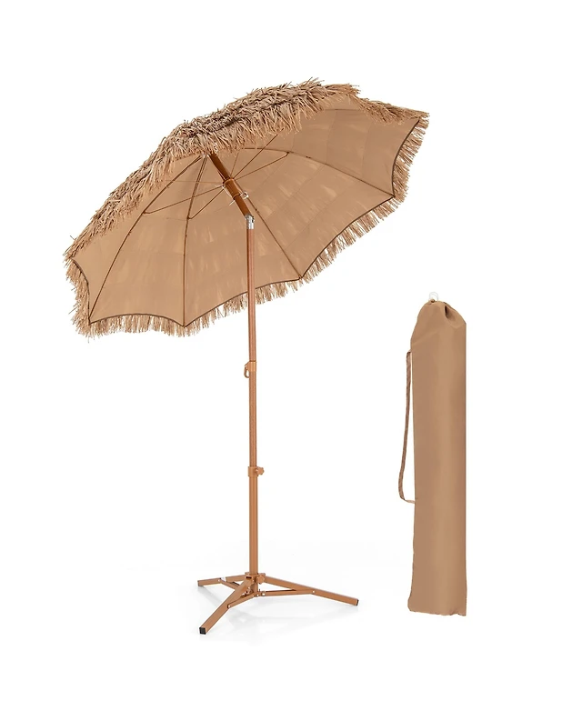Gymax 6.5 Ft Thatched Tiki Umbrella w/ Foldable Stand Hawaiian Style Beach Umbrella