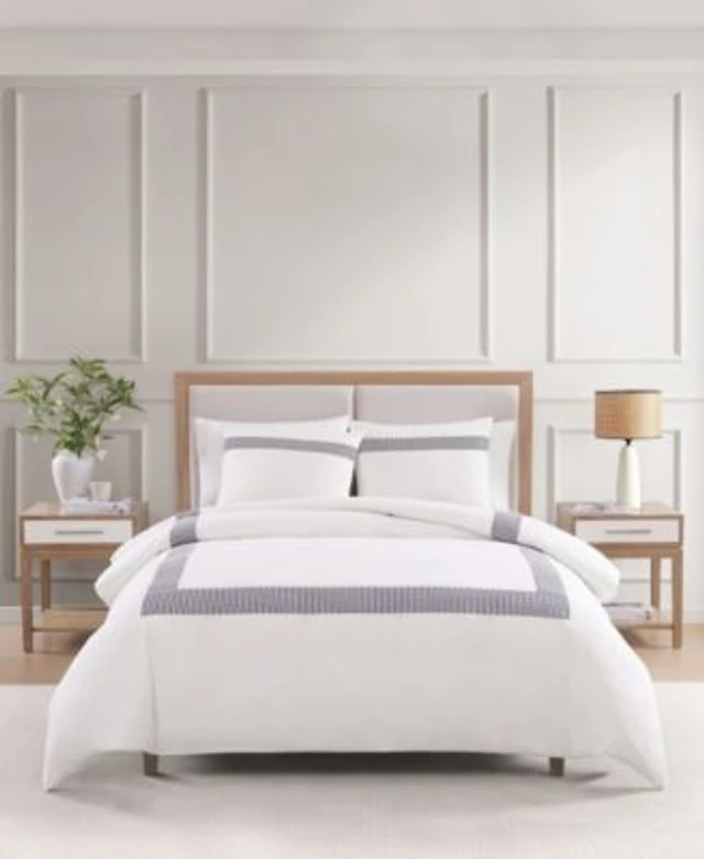 Calvin Klein Solid Puckered Grid Duvet Cover Set