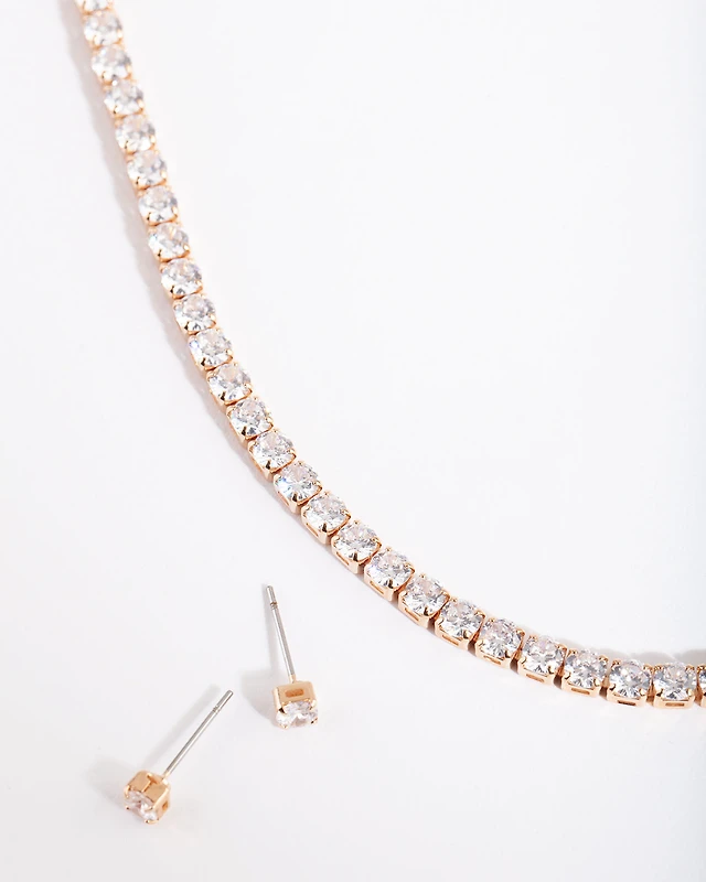 Gold Cubic Zirconia Tennis Bracelet & Earrings Set