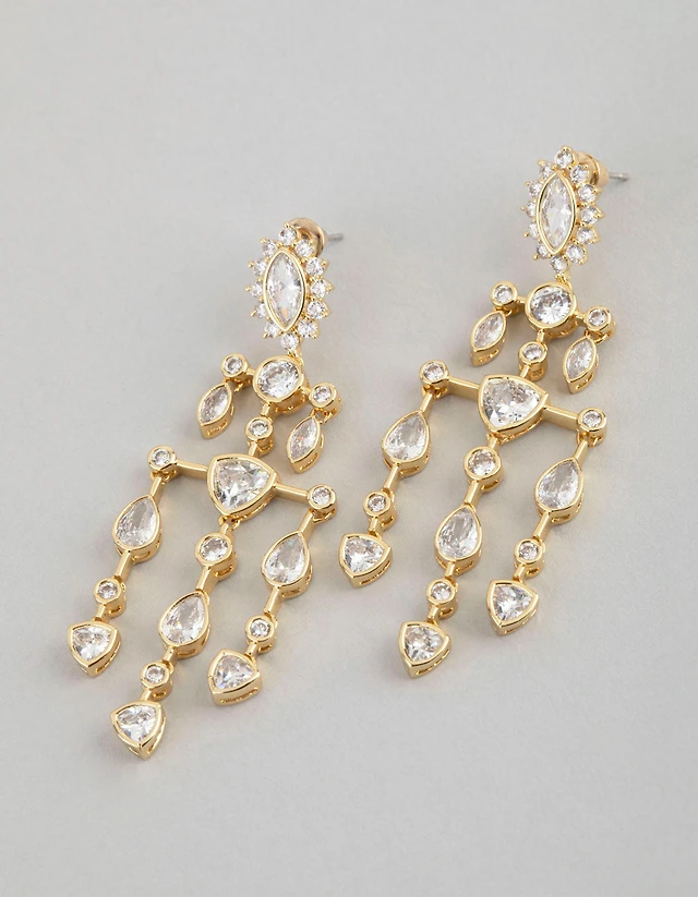 18ct Gold Plated Brass Cubic Zirconia Chandelier Drop Earrings