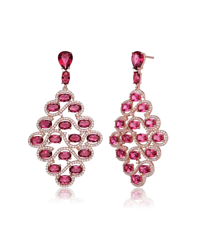 Sterling Silver White Gold Plating with Red Cubic Zirconia Drop Earrings