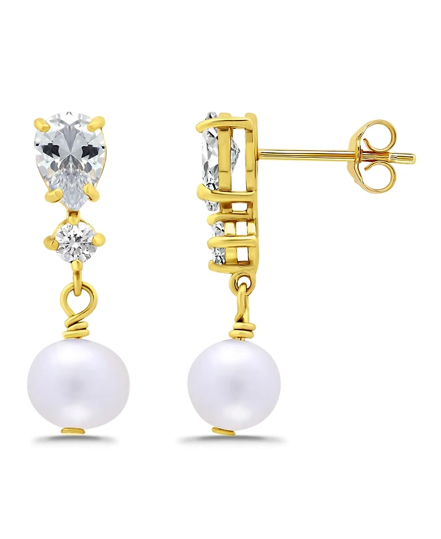 Macy's Freshwater Cultured Pearl Drop Cubic Zirconia Post Earrings
