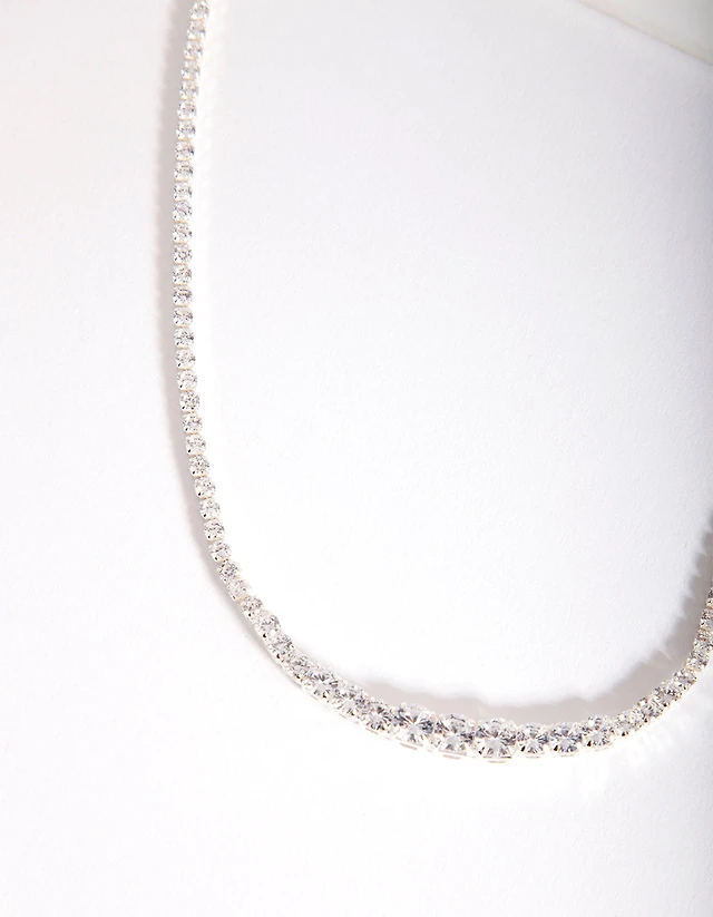 Silver Cubic Zirconia Graduating Diamante Tennis Necklace