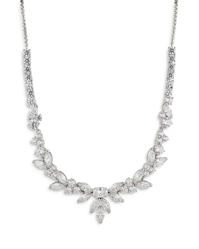 Prima Cubic Zirconia Cluster Statement Necklace in Rhodium Plated, 16"-18"