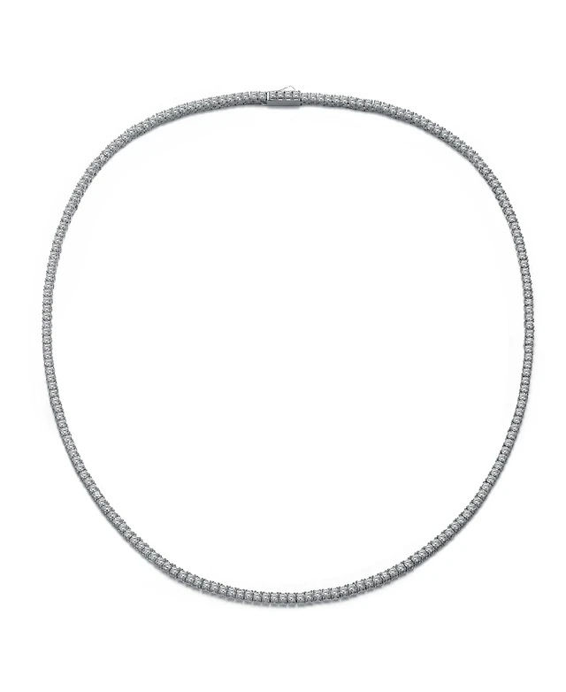 Cubic Zirconia Layered Tennis Necklace in Rhodium Plated, 16"