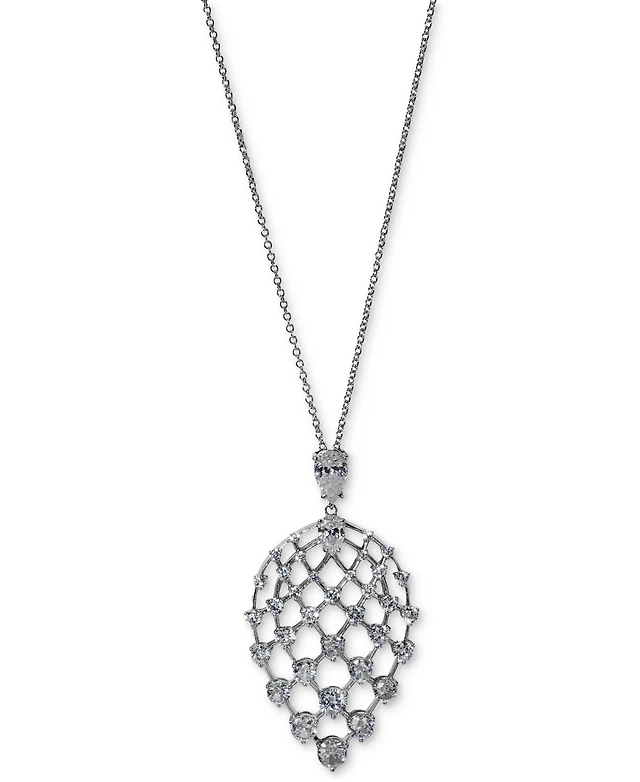 Eliot Danori Rhodium-Plated Pear-Shape Cubic Zirconia Lariat Necklace, 16" + 2" extender, Created for Macy's