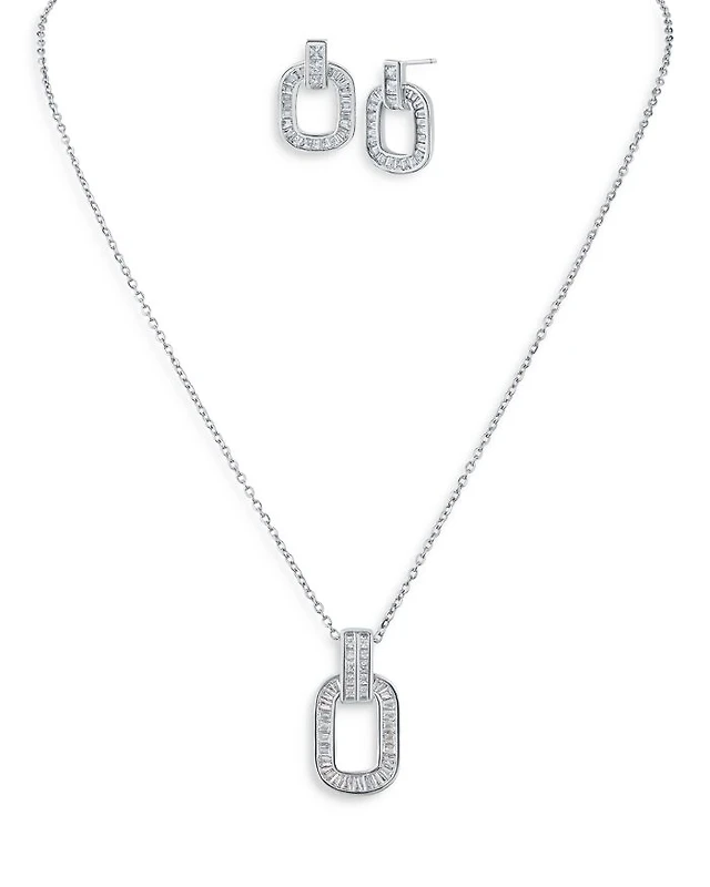 Silver Cubic Zirconia Statement Diamond Earrings & Necklace Set