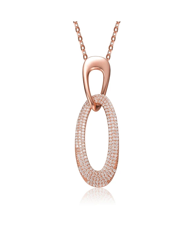 Sterling Silver with Clear Cubic Zirconia Interlocking Links Necklace in White Gold Plated or 14K Gold Plated