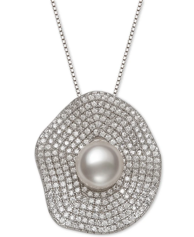 Macy's Freshwater Cultured Pearl Cubic Zirconia Open Heart Pendant Necklace