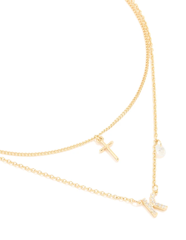 Unwritten Cubic Zirconia Double Cross Pendant Layered Necklace Set