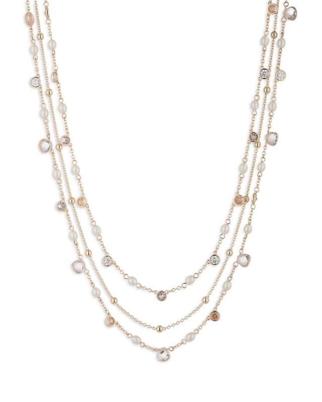 Three Row Cubic Zirconia & Faux Pearl Collar Necklace, 16", 17.25", 18.25"